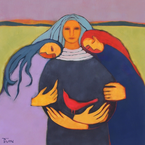 Motherhood. 2026, canvas, acrylic, 80 x 80 x 4.5 cm. Work available.